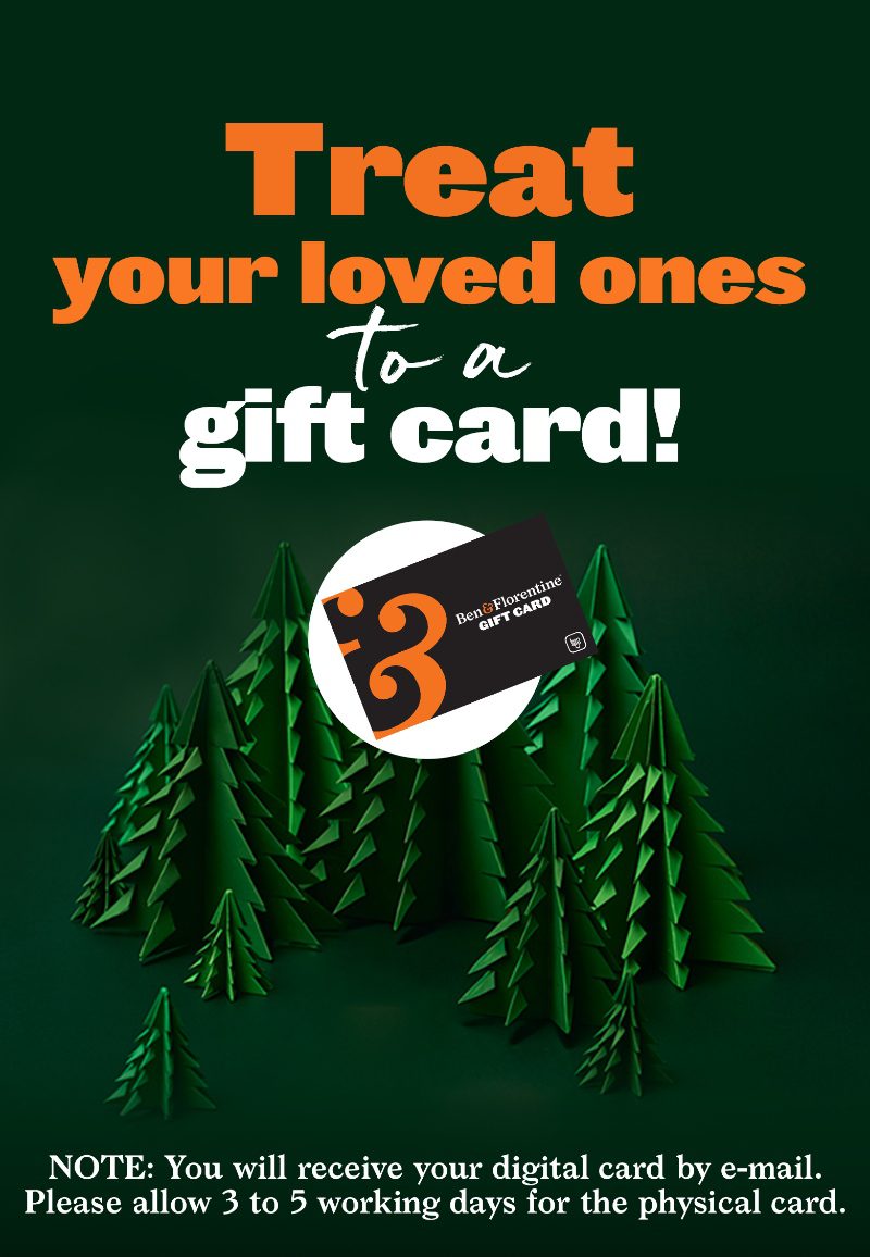 Print this virtual gift card or show it on your mobile phone with your next purchase at any Ben & Florentine restaurant.